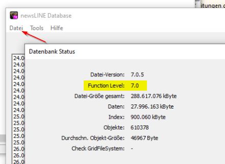 Für ein direktes Upgrade/Update der Datenbank wird ein minimaler Function-Level vorausgesetzt. Das newsLINE Installationsprogramm zeigt eventuell einen Warnhinweis, falls der aktuelle Function-Level nicht ausreichend ist.