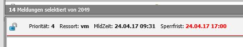 Eine etwaige Sperrfrist der angezeigten Meldung wird in der Toolbar angezeigt: